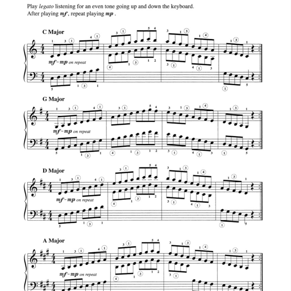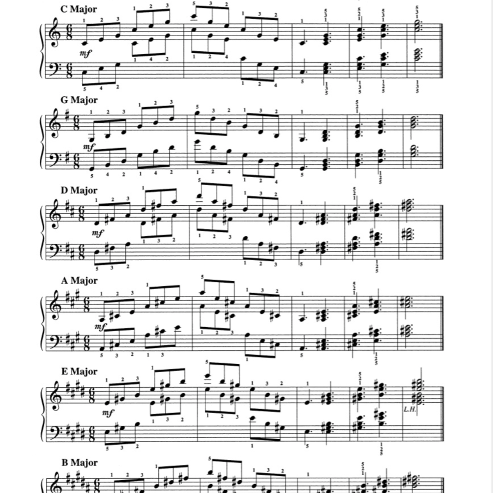 The Skill Sheets provide innovative presentations of major and minor 5-finger patterns, scales, arpeggios, and chords-designed to build essential skills.