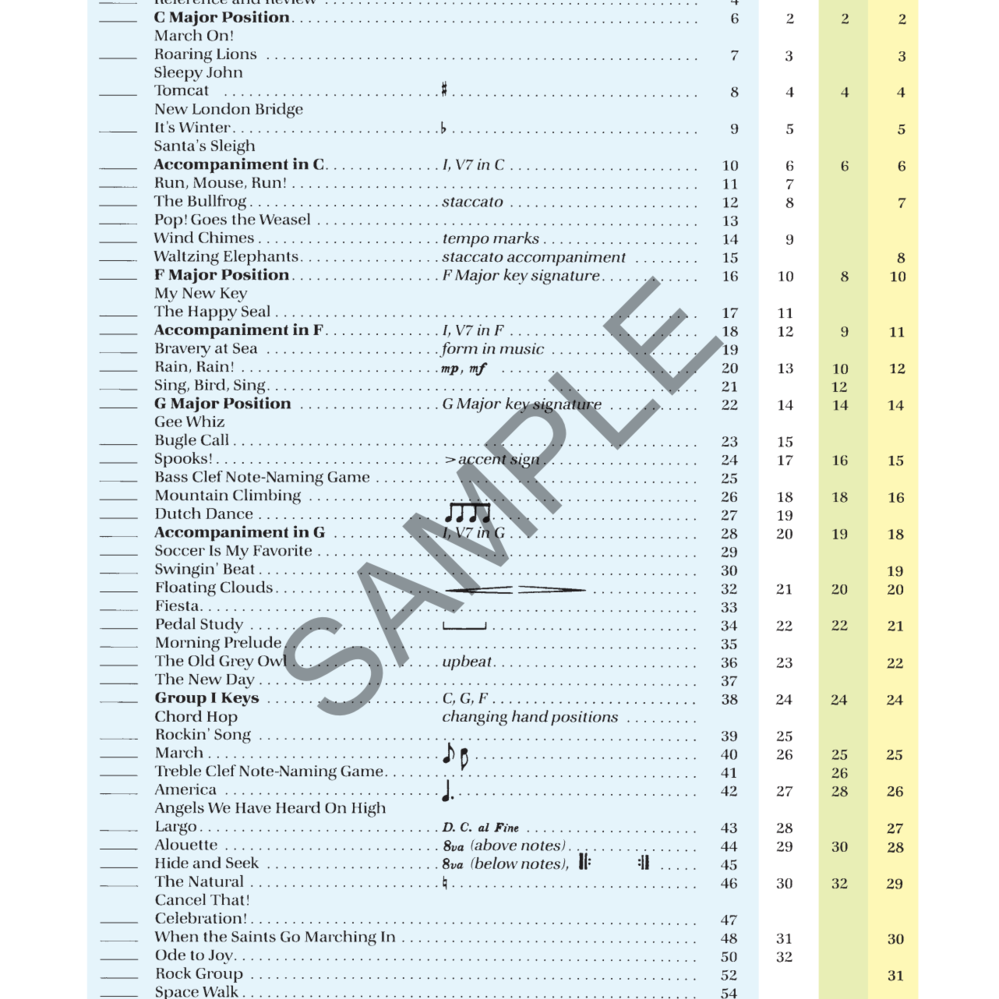 Level 1 may be used with students who have completed any Primer Level. It begins with easy pieces in the C position and presents C, F, and G 5-finger positions.
