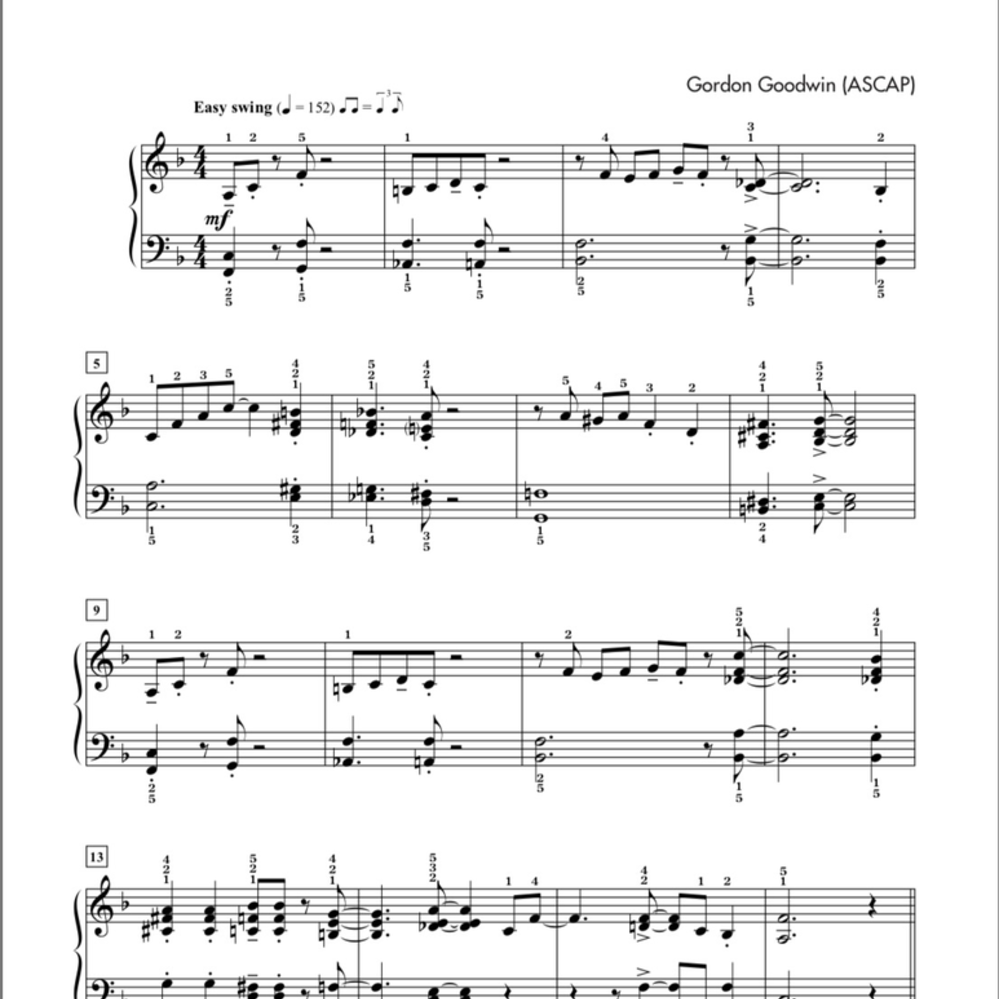 This book contains piano solo adaptations of jazz band composer Gordon Goodwin's most popular Big Phat Band titles. Musically challenging but technically accessible, these piano pieces capture the essence of the Big Phat Band versions. The spirit of each composition can be heard in the videos of Gordon Goodwin playing each piece while providing learning and performance tips, available online.