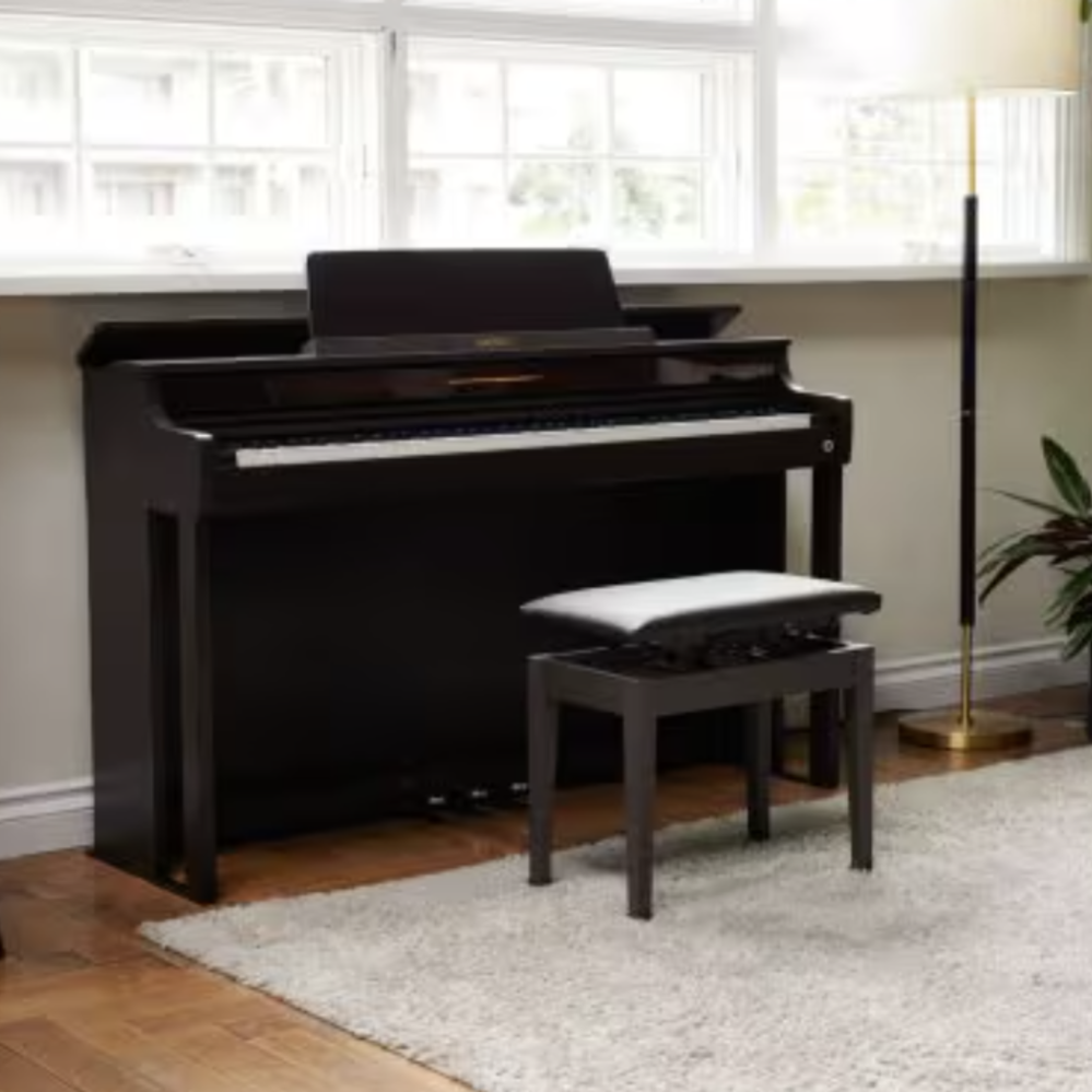Included height-adjustable padded piano bench
