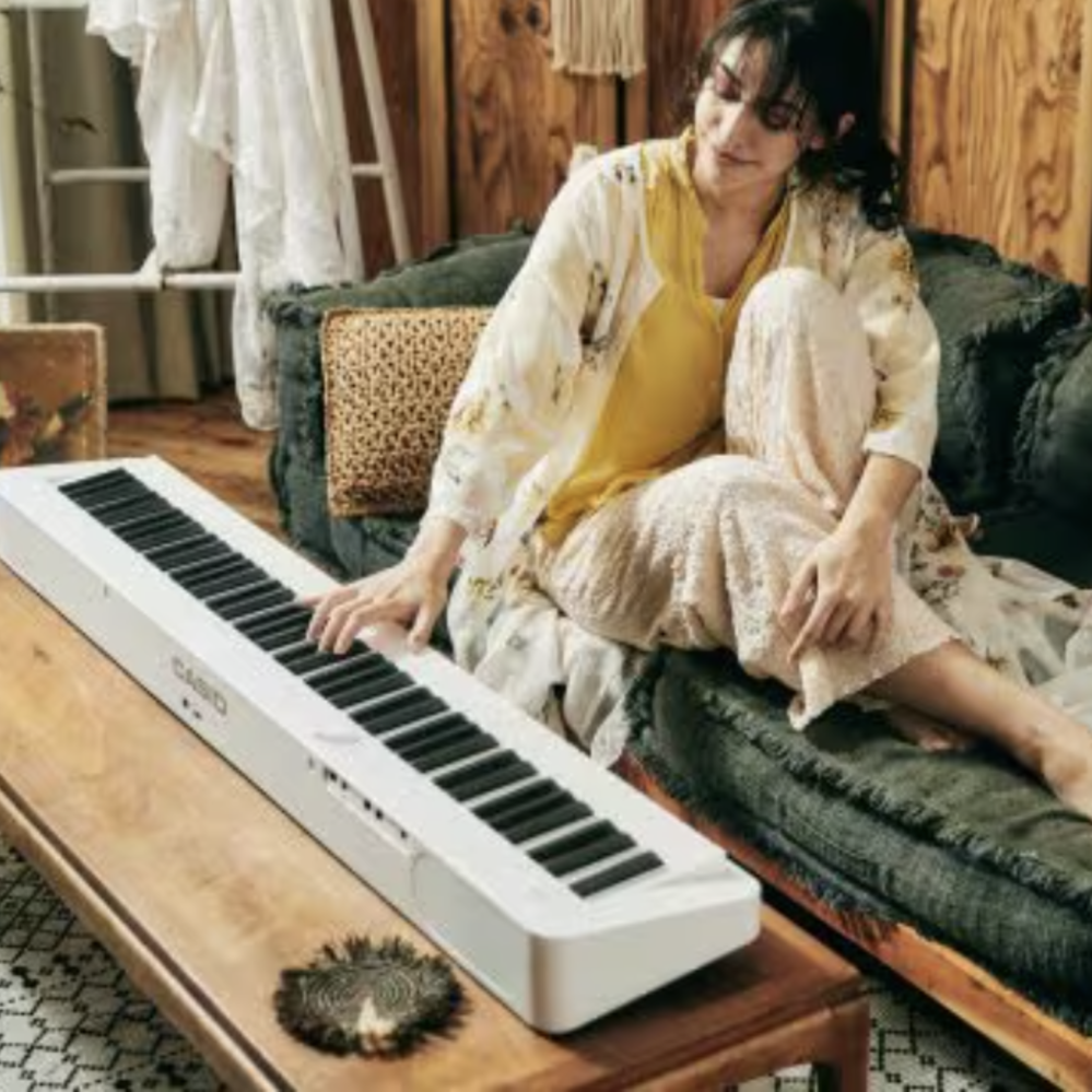 It goes anywhere you need a piano: On a table, on a counter, on a desk, on your bed, the list goes on. Weighing under 25 pounds and with optional 6xAA battery power, the possibilities are endless.