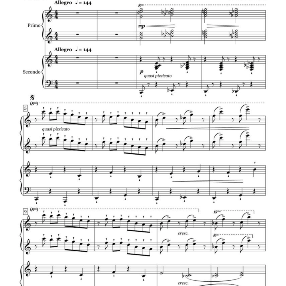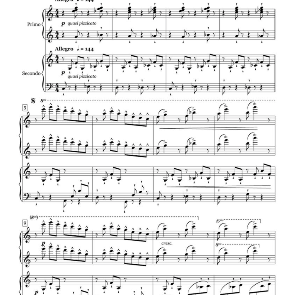 This delightful and engaging piece by Bill Gillock is for 4 players on 2 pianos. First published in 1977, it is still frequently on the popular NFMC list and is surprisingly as much a favorite for piano studios as it is for professional pianists! It was newly engraved in 2024. This product includes a separate insert for the second piano.