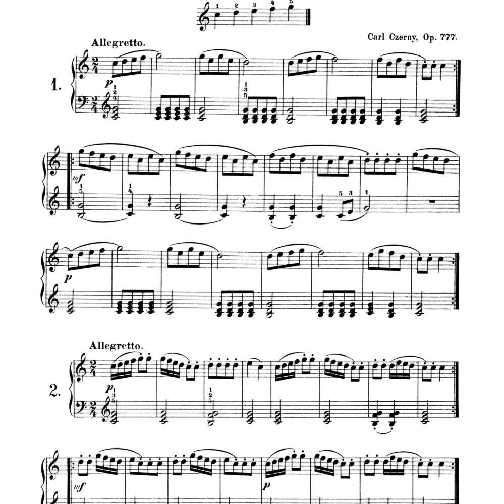 Carl Czerny (1791--1857) was an Austrian pianist, composer and teacher. Today he is best remembered for his volumes of études for the piano. Czerny's music was greatly influenced by his teachers, Clementi, Hummel, Salieri and Beethoven. This book contains Czerny's Opus 777, "Five Finger Studies," Exercises 1-24. These cover only five neighboring keyboard notes, each piece in varying keys and levels of difficulty.