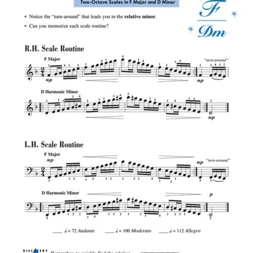 The 2nd Edition Level 4 Lesson Book follows Piano Adventures Level 3B. The book is arranged by related major and minor keys, grounding the repertoire. The emphasis on root position V7 chords, arpeggios, and “Power Scales” links applied theory to the pieces being studied. Expressive repertoire selections build a strong foundation in harmony and technique.