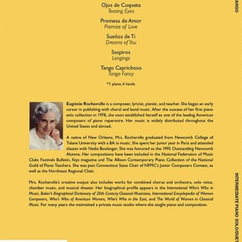 Features 6 original piano solos (and a bonus piano duet!) that were influenced by the famous Argentinian tango. The pieces are full of exotic flair, and the exciting rhythms will motivate and inspire! Includes online audio recordings by Ms. Rocherolle.