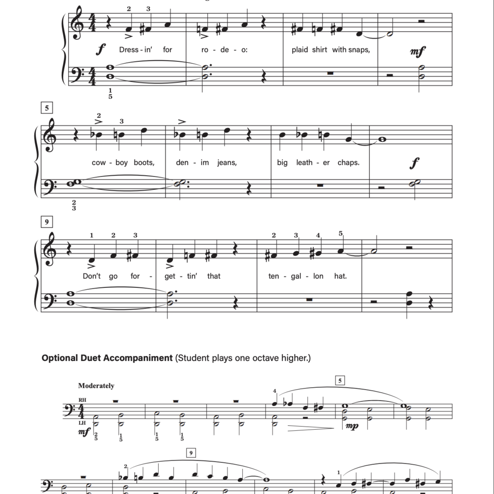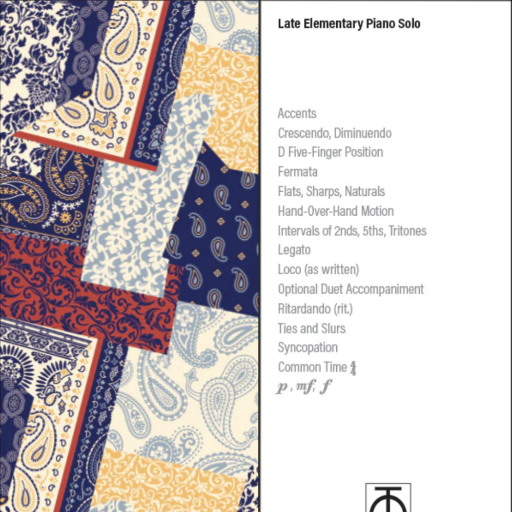 With its catchy melody, cowboy-inspired lyrics, and optional duet accompaniment, “Bandana Blue” is a lively piece that builds rhythmic control and stylistic awareness. It’s a perfect choice for recitals or festivals—bringing toe-tappin’ country charm to the piano bench!