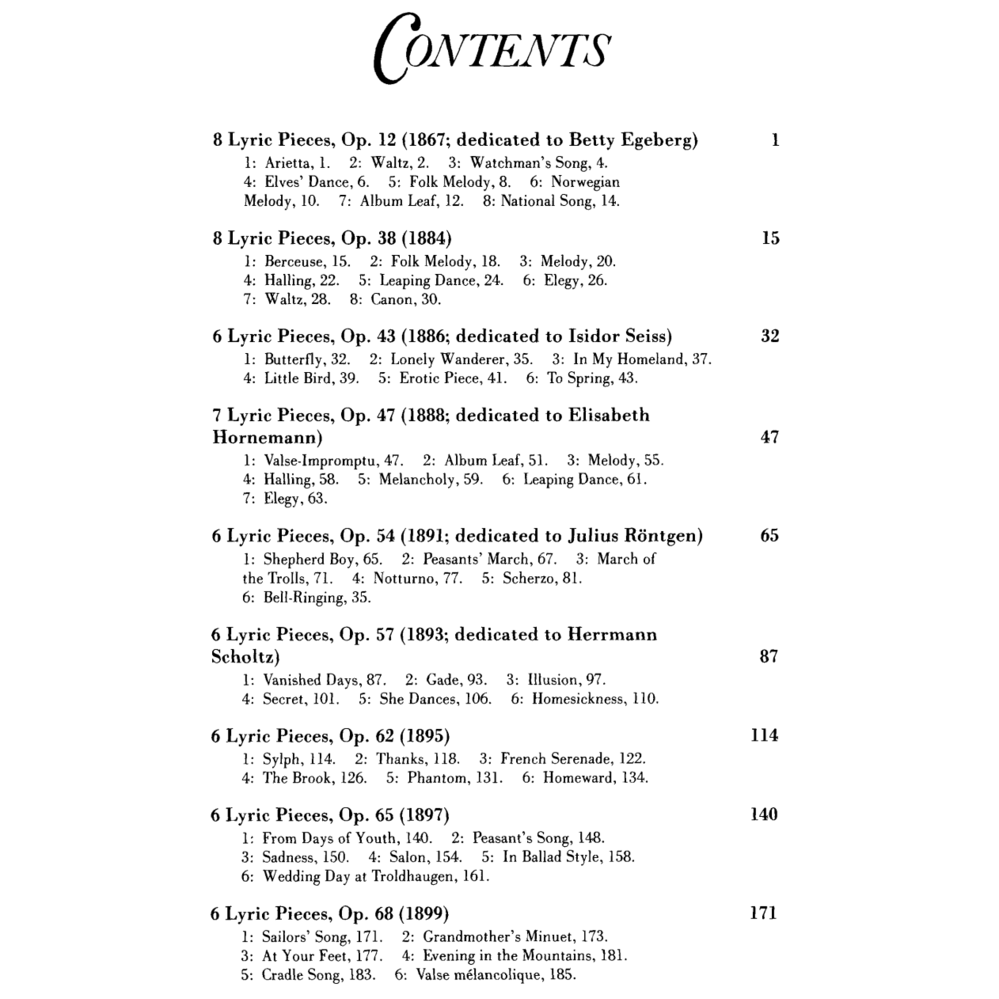 An outstanding edition presenting all 66 of Grieg's Lyrics Pieces. Although technically uncomplicated and reasonably easy to master, these pieces evoke with startling freshness, a wide emotional range often bringing into play the varied moods and idioms of Norwegian folk music.