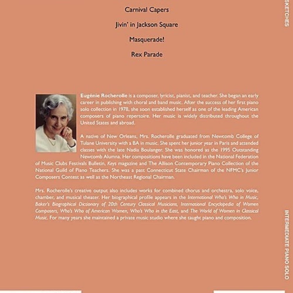 As a native of New Orleans, Eugénie Rocherolle grew up immersed in the unique musical sounds of this beautiful historic city, also known as the Big Easy. As a result, each piano solo in this collection evokes an elegant, nostalgic charm.