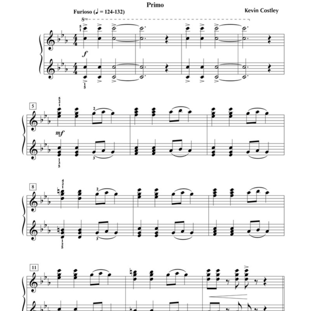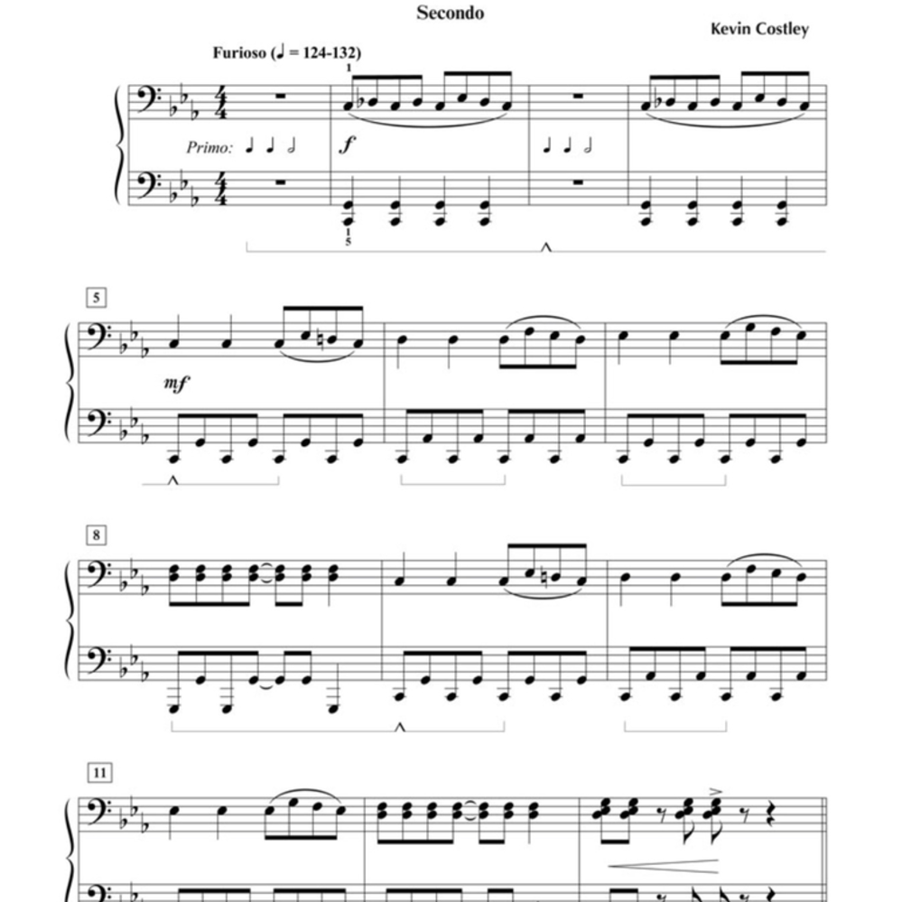 Dynamic, energetic piece producing powerful results yet is easy to play. Using dissonance to suggest danger and excitement, this crowd pleaser in the key of C minor is marked “furioso.” This duet can be learned quickly and the ensemble playing is easy.
