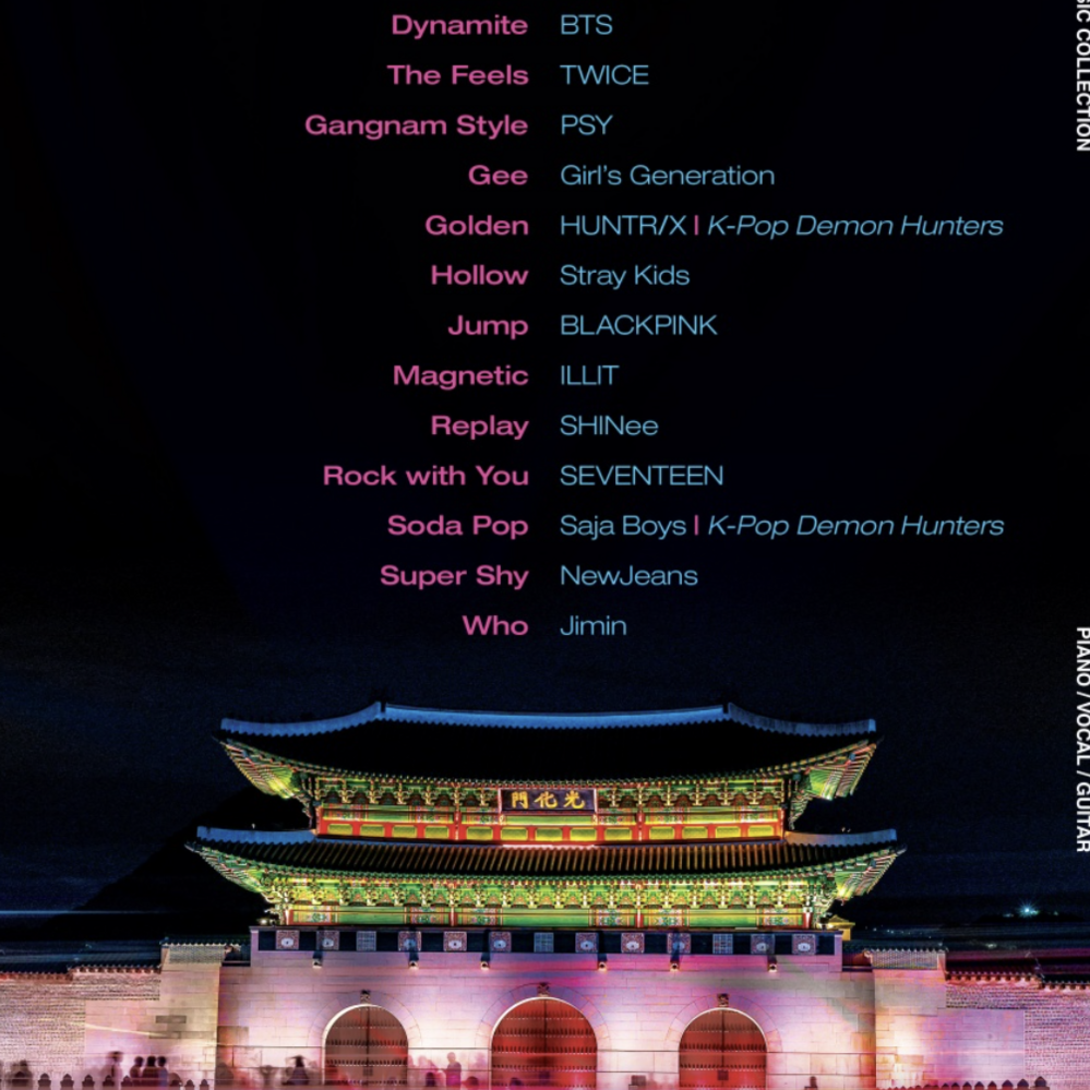 Step into the global phenomenon that's redefining pop music! K-Pop Sheet Music Collection brings together today's biggest hits from chart-topping superstars like BTS, BLACKPINK, Stray Kids, NewJeans, TWICE, and more. From the viral sensation “Gangnam Style” to modern smashes like “Golden,” “Butter,” and “Rock with You,” this collection captures the sound, style, and energy that have made K-pop a worldwide obsession.