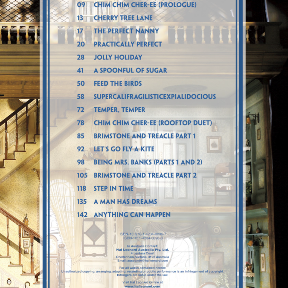 All the songs from the family-friendly stage musical from Disney and Cameron Mackintosh: Chim Chim Cher-ee • Feed the Birds • Let's Go Fly a Kite • The Perfect Nanny • A Spoonful of Sugar • Step in Time • Supercalifragilisticexpialidocious • and more. Includes a beautiful 8-page color section of photos from the Broadway production as well as an introduction from George Stiles and Anthony Drewe!