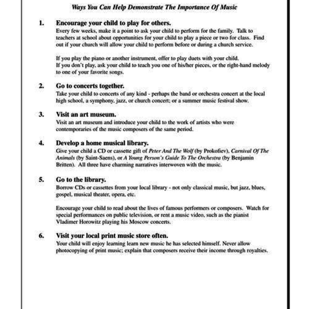 Includes a one-year practice planner with lesson assignment pages, a dictionary of music terms, a music–history timeline, keyboard guide, and staff paper.