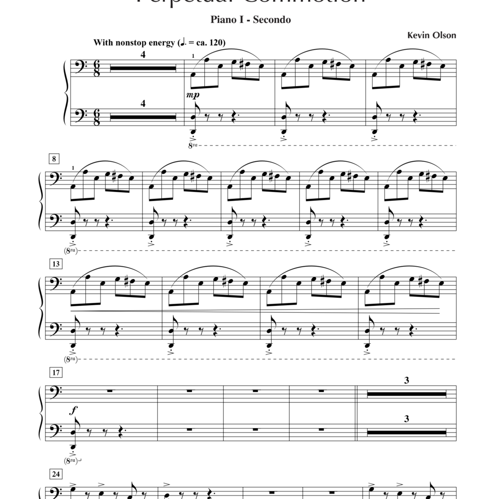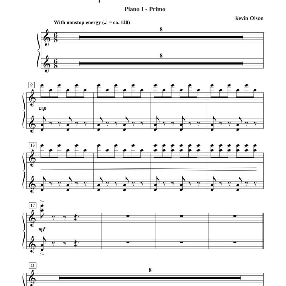 Your students will love playing this high energy piece. Featuring driving rhythms and alternating short lyrical melodies, its fast-paced perpetual "commotion" will capture the attention of any audience. A rousing close to any recital!