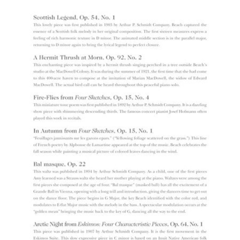 Ten works at the late intermediate to advanced level. With composer bio and notes on the music. Includes: Scottish Legend, Op. 54, No. 1; Fire-Flies from Four Sketches, Op. 15, No. 4; From Blackbird Hills, Op. 83; Variations on Balkan Themes, Op. 60; and more.