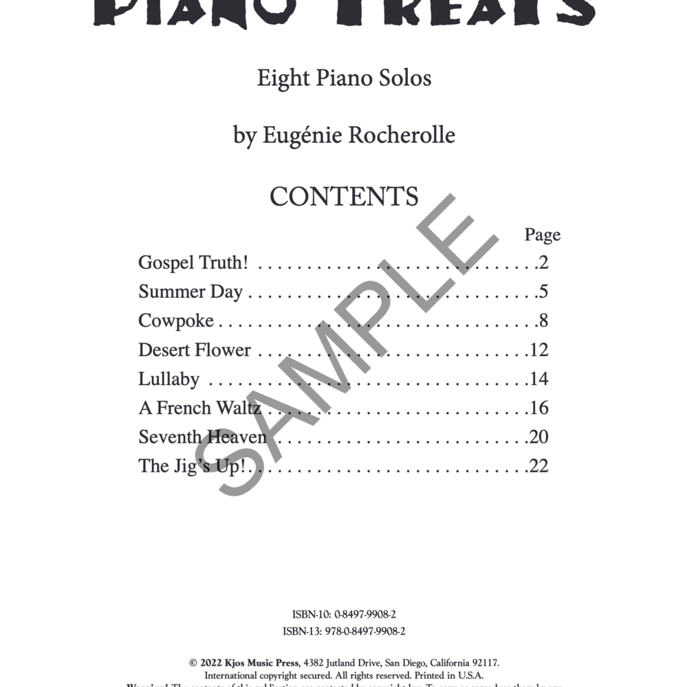 The selections included in this collection of delightful solos are early works from among Eugénie Rocherolle’s many compositions for piano. Her abilities as a composer are obvious even early in her journey as one of America’s finest composers. Diverse styles are represented including gospel, an Irish jig, ballads, a charming waltz, a lullaby and a fun piece rich with 7th chords.