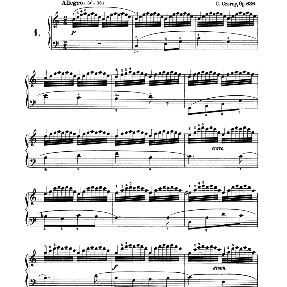 Carl Czerny (1791--1857) was an Austrian pianist, composer and teacher. Today he is best remembered for his volumes of études for the piano. Czerny's music was greatly influenced by his teachers, Clementi, Hummel, Salieri and Beethoven. This book contains Czerny's Opus 636, "Preparatory School of Velocity," Exercises 1-23.