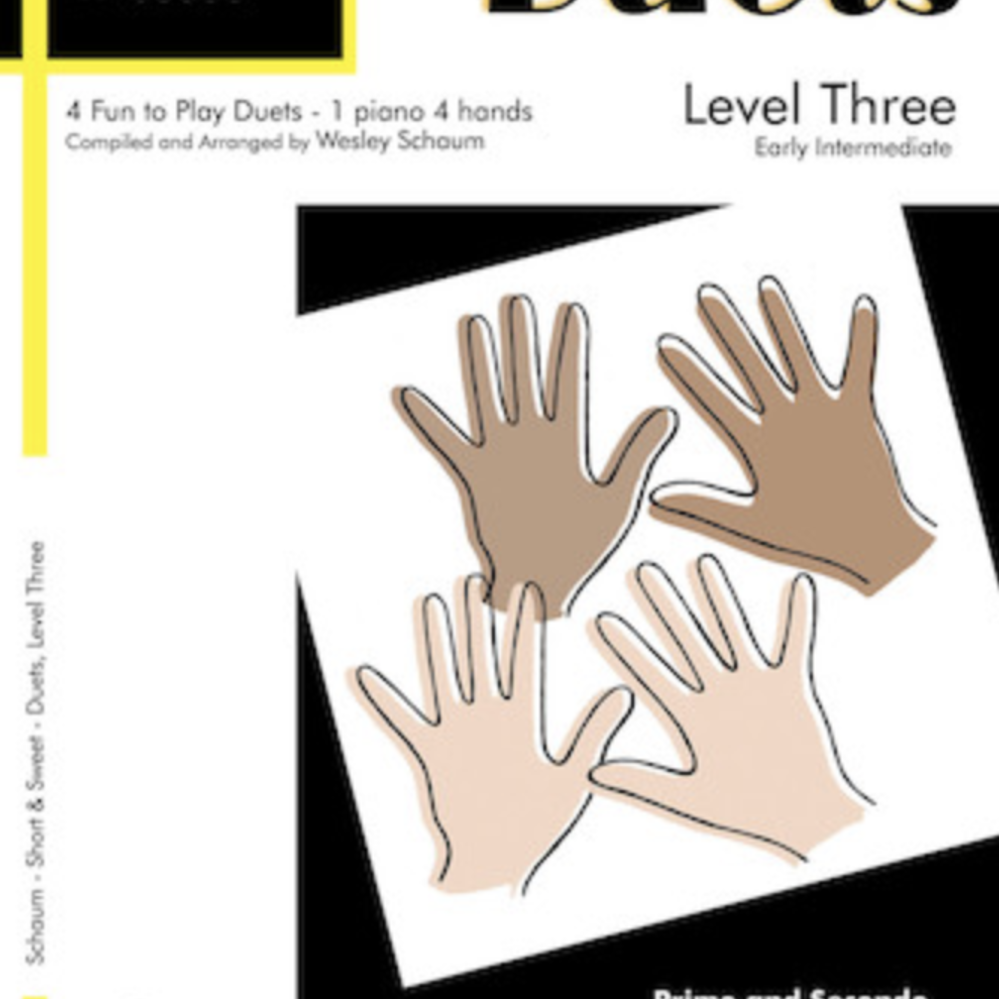 4 fun to play equal part duets for two students at one piano: Little Boogie Dog (Wesley Schaum) • Scarborough Fair (English folk song) • Stars and Stripes Forever (Sousa) • Viennese Waltz (Brahms).