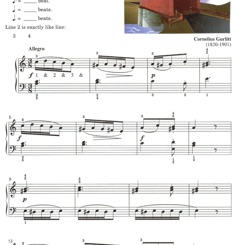 Lessons is the core of Piano Town. The controlled, steady pacing of the curriculum introduces one element at a time. Each concept is presented in a consistent, reliable format. This clear presentation helps students focus on new skills and information.