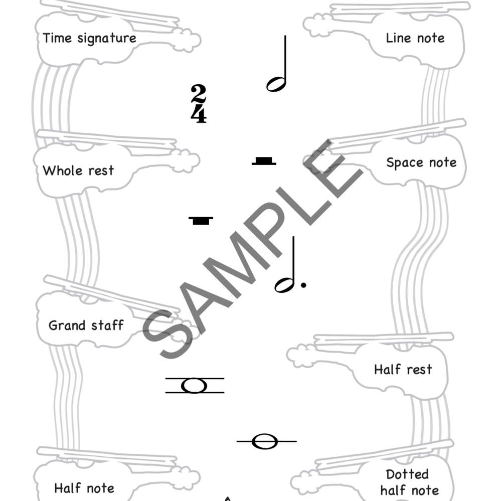 Beginning Music Notation reinforces a student’s understanding of basic notation concepts (line and space notes; note values; parts of the grand staff; basic time signatures) and will help build a solid foundation from which to build other theory concepts.