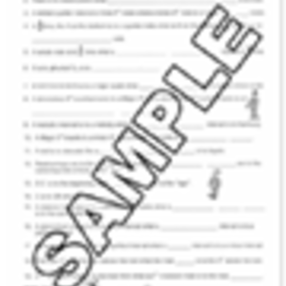 This is an “advanced” level workbook. Concepts include: Classification of intervals by type & size, inversion of intervals, major, minor, diminished & augmented triads, major & minor chords & primary chords in inversions, relative major & minor keys, 3 types of minor scales, parallel keys, authentic & half cadence, voice leading rules, perfect & imperfect cadences, melody writing, transposition, circle of 5ths, vocabulary, ear-training, review test. (63 pages, 11 Lessons, 4 Challenge Sheets). Workbooks are NOT reproducible. Upon completion, a student is ready to begin the Grade Ten workbook. Use the free online Ear Training videos to do the ET at home. Use the ‘Vocab Drills & Games’ link to drill the vocabulary online, powered by Quizlet. The answers to this workbook and the ET guides are in Teacher’s Edition Vol 3.
