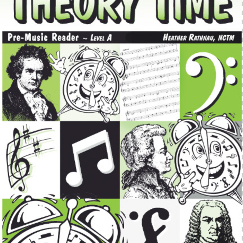 The Theory Time Level A workbook is a pre-music reader that teaches many concepts without the use of a staff. Students will learn high & low, LH & RH, music alphabet, finger numbers, two & three black-key groups on a keyboard, line & space notes, drawing & counting quarter, half & wholes notes, and soft & loud. This workbook is for an early-beginning student and is the official study material for the Level A theory test in the NFMC Festivals theory-testing program.